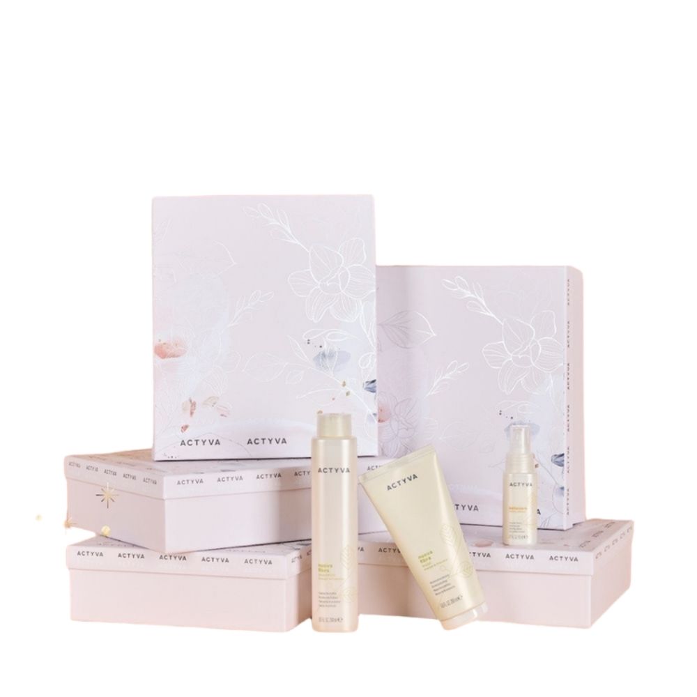 Il Kit Natale Actyva 2025 offre una rigenerazione completa dei capelli grazie alla linea Nuova Fibra, formulata con attivi ricostruenti che rinforzano la struttura capillare e ne migliorano elasticità, lucentezza e morbidezza. Lo shampoo e il trattamento lavorano in sinergia per riparare la fibra dall’interno, ridurre la rottura e sigillare le cuticole, lasciando i capelli più compatti, corposi e visibilmente più sani.