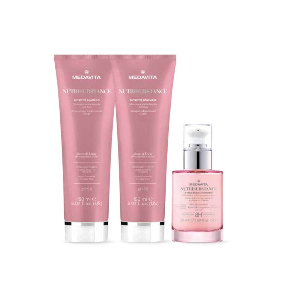 Scopri il rituale professionale per capelli secchi e sensibilizzati con la linea Nutrisubstance di MEDAVITA.